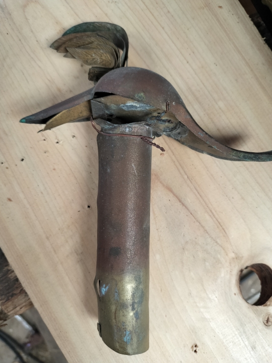 鳳凰、龍、魚等のシンボルについて 同写真のみ神輿(みこし)の鳳凰は、木材で製作しています(羽部分は金属)。一点一点手彫りで製作していますので、世界に一つのオリジナルとなります。鳳凰、龍、魚等、色や形状、顔つき等もご要望にお応えします。 引受け時に設置されていたもの 完成時のもの